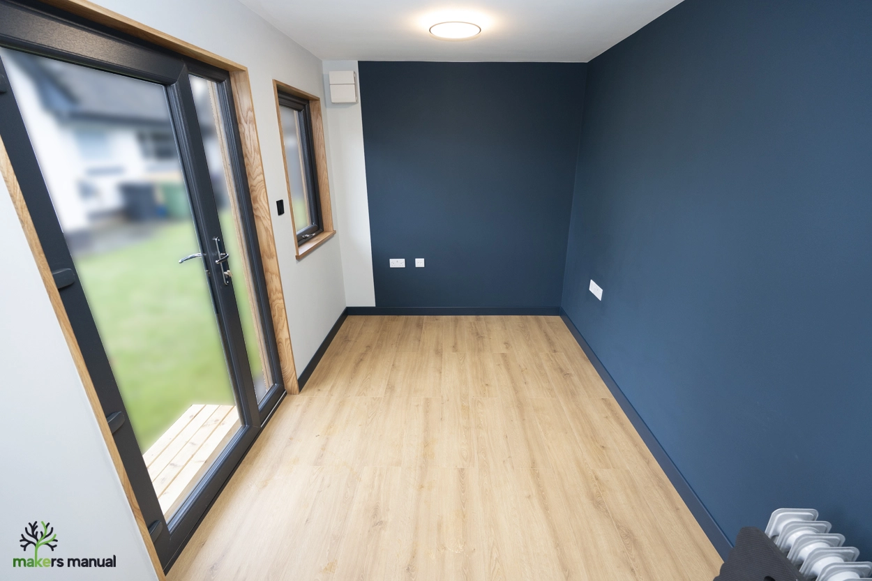 In this final part of our garden room build series, we complete the fit-out from start to finish! Watch as we install plasterboard, tape and joint seams, fit stylish oak window trim, paint the walls with a two-tone scheme, install lights, and lay laminate flooring. We share practical tips on achieving a professional finish, including screw placement, corner treatment, and preventing paint bleed.